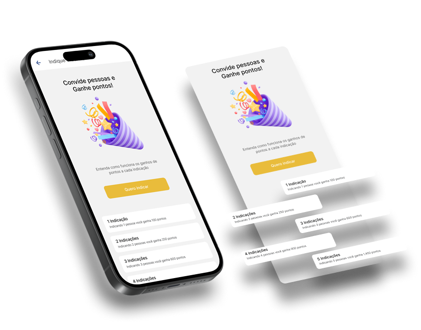 Indique amigos todos os meses e receba pontos conforme o número de pessoas indicadas. Quanto mais amigos, mais pontos você ganha e a contagem reinicia todo mês!